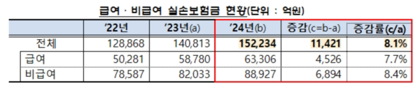 12일 금융감독원이 발표한 '2024년 실손의료보험 사업실적(잠정)'에 따르면, 지난해 실손보험 전체 지급보험금은 15조2000억원으로 전년보다 1조1000억원(8.1%) 증가했다. 이 중 비급여 항목이 8조9000억원으로 전체의 58.4%를 차지했다.