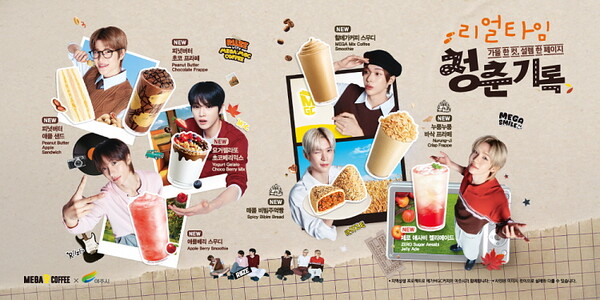 바쁜 일상 속 청춘에게 포근함과 즐거움을 선사할 가을 시즌 메뉴가 출시됐다. 메가MGC커피는 글로벌 아티스트 라이즈(RIIZE)와 협업한 ‘청춘기록’ 캠페인을 통해 신메뉴를 공개하며, 청춘의 성장과 성취를 음료와 디저트로 기록할 기회를 제공한다.