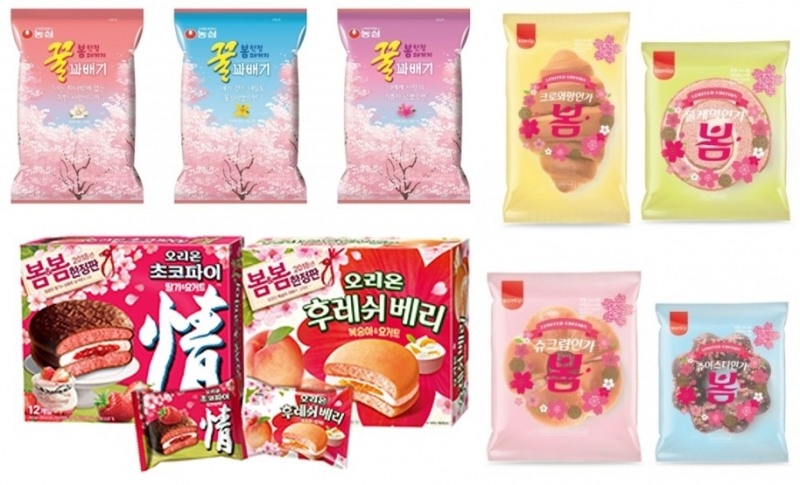 특히 식음료 업종에서 활발하다. SPC삼립 ‘벚꽃빵’, 포장지를 분홍색 벚꽃으로 꾸민 농심 '꿀꽈배기', 오리온은 초코파이와 후레시베리 분홍색 포장지 입힌 한정판, 미스터피자 '치즈블라썸스테이크' 등이 나왔다.