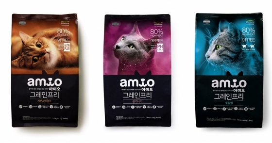 풀무원 건강생활의 펫푸드 브랜드 '아미오'도 전날 반려묘용 신제품 '아미오 그레인 프리' 3종을 내놓으며 반려묘 시장에 출사표를 던졌다. 육식동물인 고양이의 특성에 맞춰 전 연령이 섭취할 수 있는 '키튼&어덜트', 요로계 건강관리용 '유리너리', 체중조절용 '슬림업' 등 3종으로 구성했다.