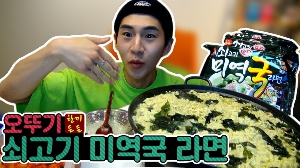 유튜브 구독자 300만 명을 바라보는 국내 먹방계의 1인자 밴쯔는 "미역국으로 만든 라면은 처음이다"라고 놀라움을 표했다.