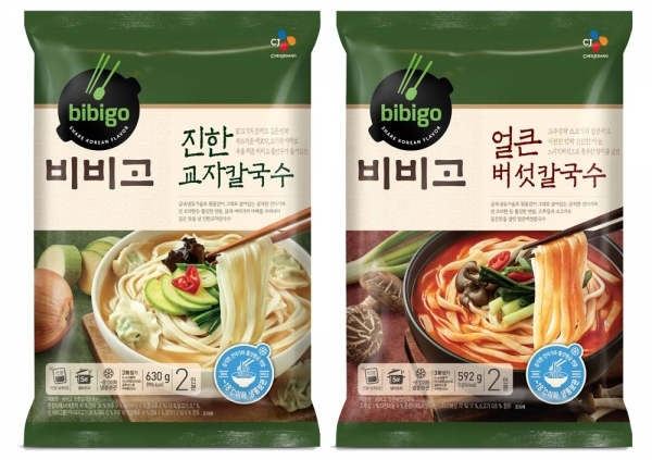 CJ제일제당은 최근 1년여 간의 개발 기간을 거친 한식면 제품 ‘비비고 칼국수’ 2종을 선보였다. 제품은 ‘비비고 진한 교자 칼국수, ‘비비고 얼큰 버섯 칼국수’로 구성, 10,000번 이상 치댄 반죽을 제면 후 급속냉동 기술로 얼려 쫄깃한 면발과 생생한 원물 고명, 깊고 진한 육수를 그대로 구현해낸 것이 특징이다.