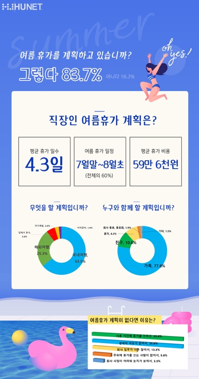 한편 여름 휴가 계획이 없다고 답한 직장인은 16.3%였다.