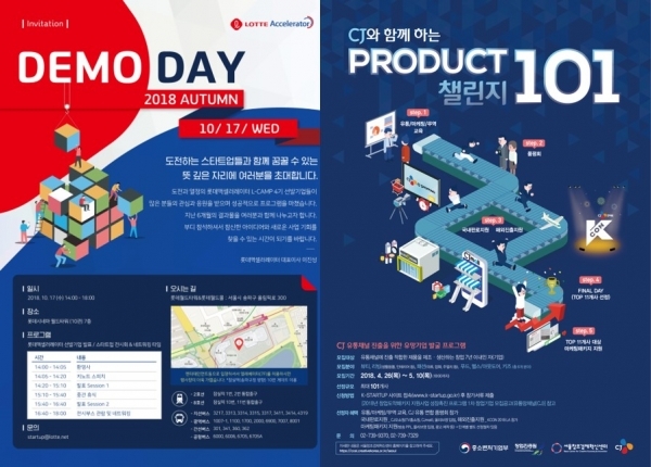 CJ는 서바이벌 방식 예능 프로그램 ‘프로듀스 101’ 형식을 차용한 ‘프로덕트 101’를 롯데는 스타트업 보육·지원 조직 ‘롯데액셀러레이터’를 운영하고 있다. 이들은 우수 스타트업을 발굴해 일자리 창출은 물론이고 판로 개척과 마케팅 활동을 돕겠다는 의도다.