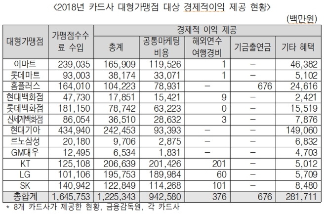 그러나 이중 1조2253억원(75%)을 마케팅 등 경제적 이익 형태로 대형가맹점에 다시 돌려줬다.