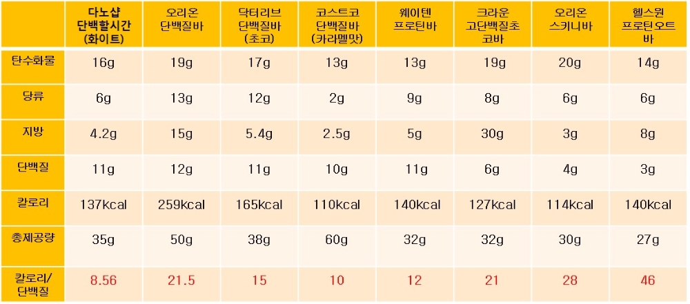특히 편의점이나 잡화점 등 쉽게 접할 수 있 단백질 바에서는 영양성분 함량은 적고 반대로 당분이나 칼로리가 상당히 높아 다이어트 등을 위해 구매했다면 주의가 필요해 보인다.