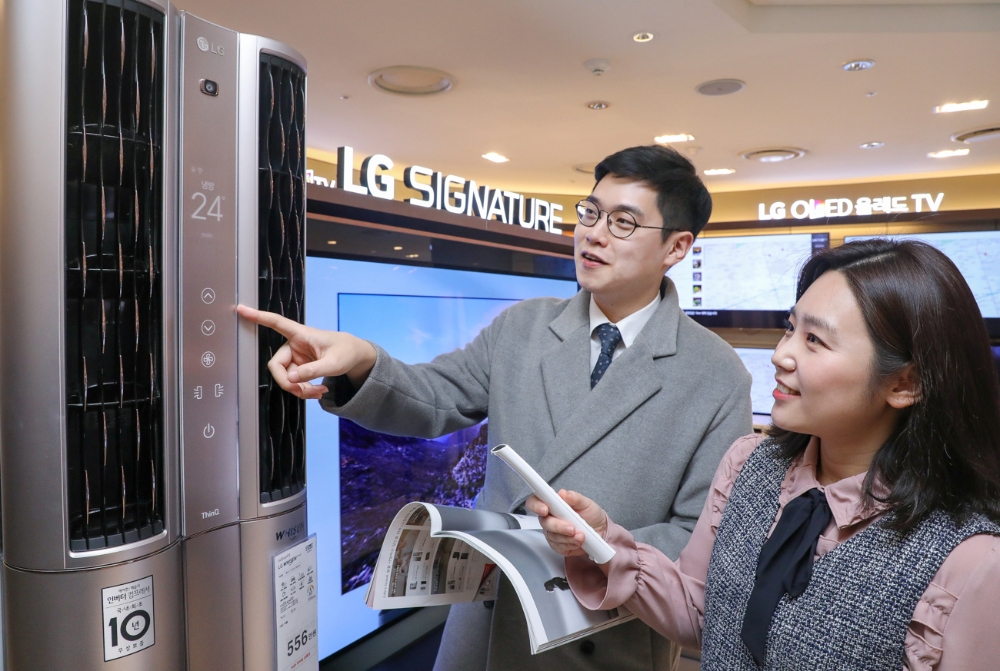 현대백화점은 압구정본점 등 전국 15개 전 점포와, 현대프리미엄아울렛 김포점·송도점, 현대시티몰 가든파이브점에서 내달 1일까지 삼성전자·LG전자의 2019년 에어컨 신상품을 최초판매가 대비 최대 40% 할인 판매한다.