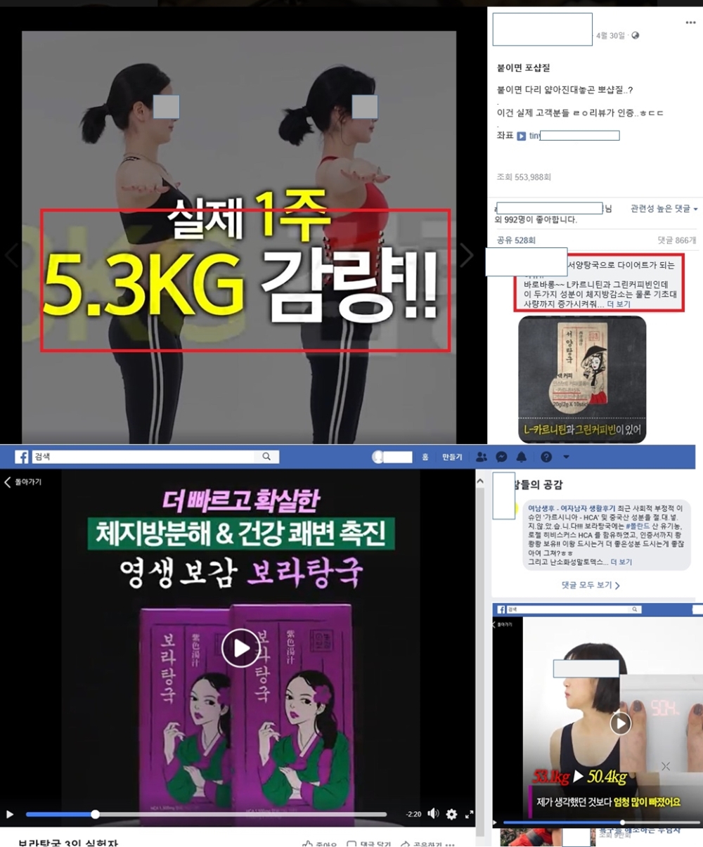 특히 업체들은 해당 제품을 먹고 체중이 감소했다는 가짜 체험기 영상을 만들어 사회 관계망 서비스(SNS)에 게시하거나, 광고대행사를 통해 동영상을 유포하여 제품 판매를 유도하는 등 소비자를 기만하는 광고를 계속했다.