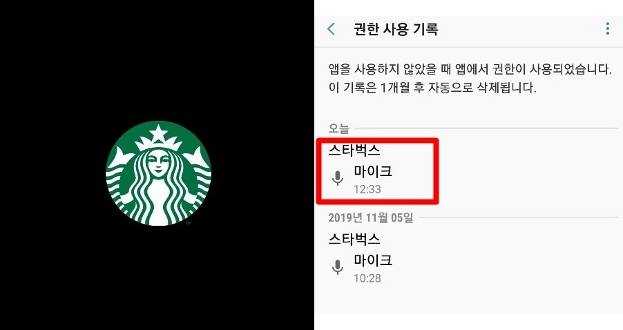 다만, 스타벅스 앱을 설치할 때 마이크 권한 허용이 필수 사항은 아니다. 만일 사용자가 마이크에 대한 권한을 승인하지 않는 경우, 애플리케이션 실행 시 현재 매장의 이름을 인식할 수 없으며, 가까운 매장이 자동 선택되는 기능을 받을 수 없다는 데 차이가 있다.