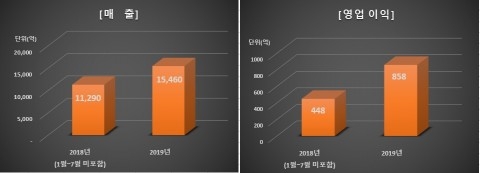 별도 재무재표 기준으로는 방산부문은 2019년 연간 매출액 1조705억원, 영업이익 454억원을 달성했고 ICT부문은 연간 매출액 4490억원, 영업이익 403억원을 달성했다. 특히 2018년 양문분간 기업결합으로 발생하게 된 PPA(기업결합으로 인한 무형자산 상각) 상각비의 ICT부문 반영(2019년 144억)을 감안하면 실질적으로 합병 1년여만에 본격적으로 영업이익 1000억원 시대에 진입한 호실적이다. 이는 지난해 방산부문의 역대 최대 수주실적 달성과 함께 합병 이후 양 부문간 시너지 경쟁력에 기반한 국방SI사업 수주 등의 성과로 볼 수 있다.