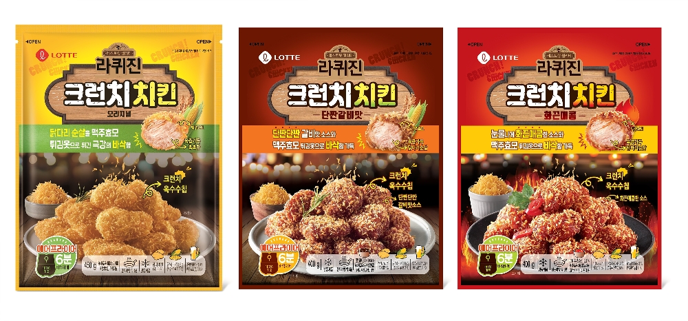롯데푸드는 집에서 에어프라이어로 간편하게 즐기는 순살치킨 ‘라퀴진 크런치치킨’ 3종을 출시한다고 12일 밝혔다.
