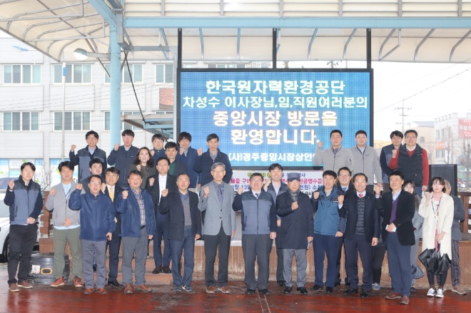 이날 차성수 한국원자력공단 이사장은 본사 간부, 직원 등 50여 명과 함께 장보기 행사를 진행하고, 시장 내 국밥집을 찾아 점심 식사를 가진 것으로 알려졌다.