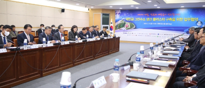 전라북도와 새만금개발청은 21일 전북도청에서 새만금개발청, 전라북도, 군산시 등 22개 기관․기업이 참여하는 가운데 새만금 그린수소 생산 클러스터 구축을 위해 협력하는 업무협약을 체결했다고 밝혔다.