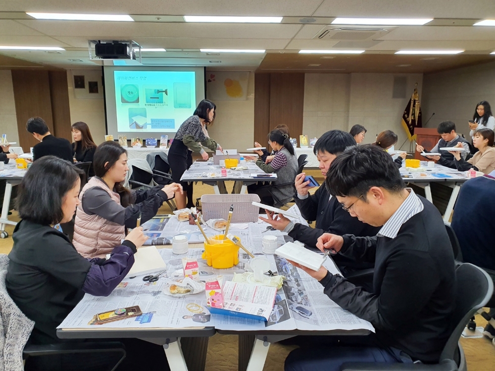 이날은 폐지 줍는 어르신들을 돕는 사회적 기업 러블리페이퍼와 함께 폐지를 재활용한 페이퍼캔버스 40개를 제작하는 봉사활동을 전개했다. 이번 활동에 참여한 직원들은 폐박스를 오려붙이고, 캔버스 원단을 둘러 젯소를 바르는 등 강사의 안내에 따라 열심히 캔버스를 만들었다. 제작한 캔버스에는 고전 명화를 출력하여 작품설명과 함께 임직원 봉사단이 활동하는 동작구 내 아동시설에 기부할 계획이다.
